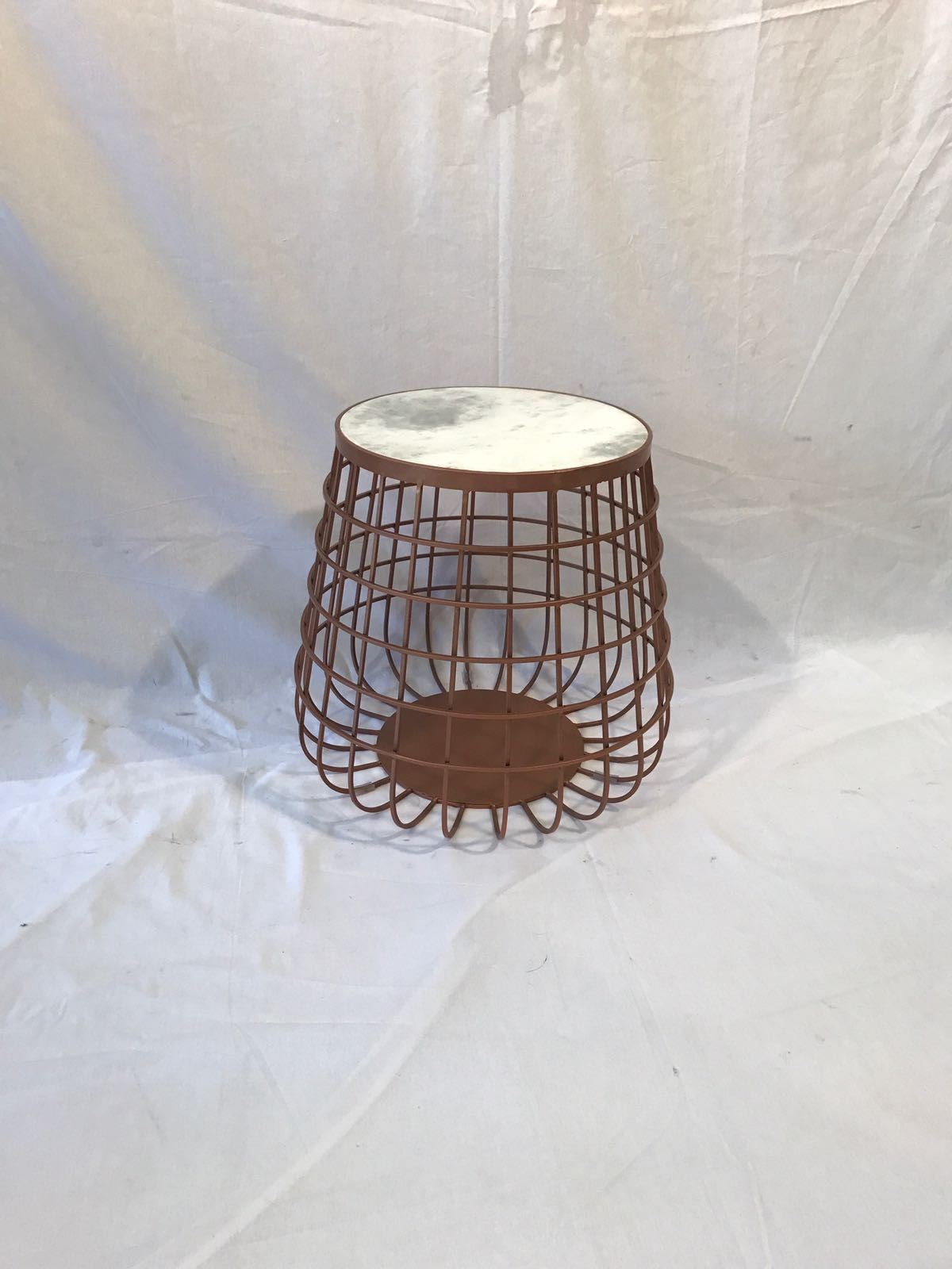 Rond bijzettafeltje met een koperen metalen onderstel en marmeren blad.