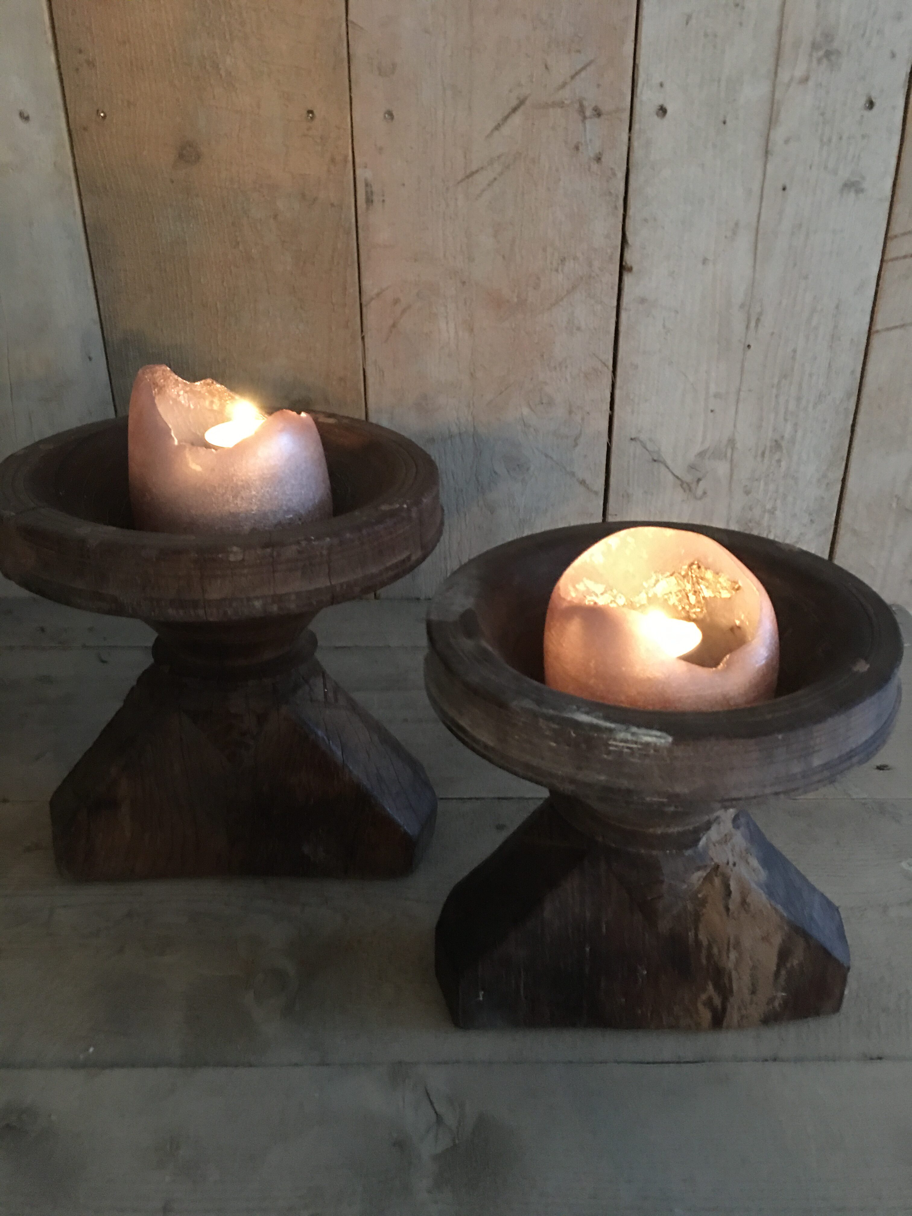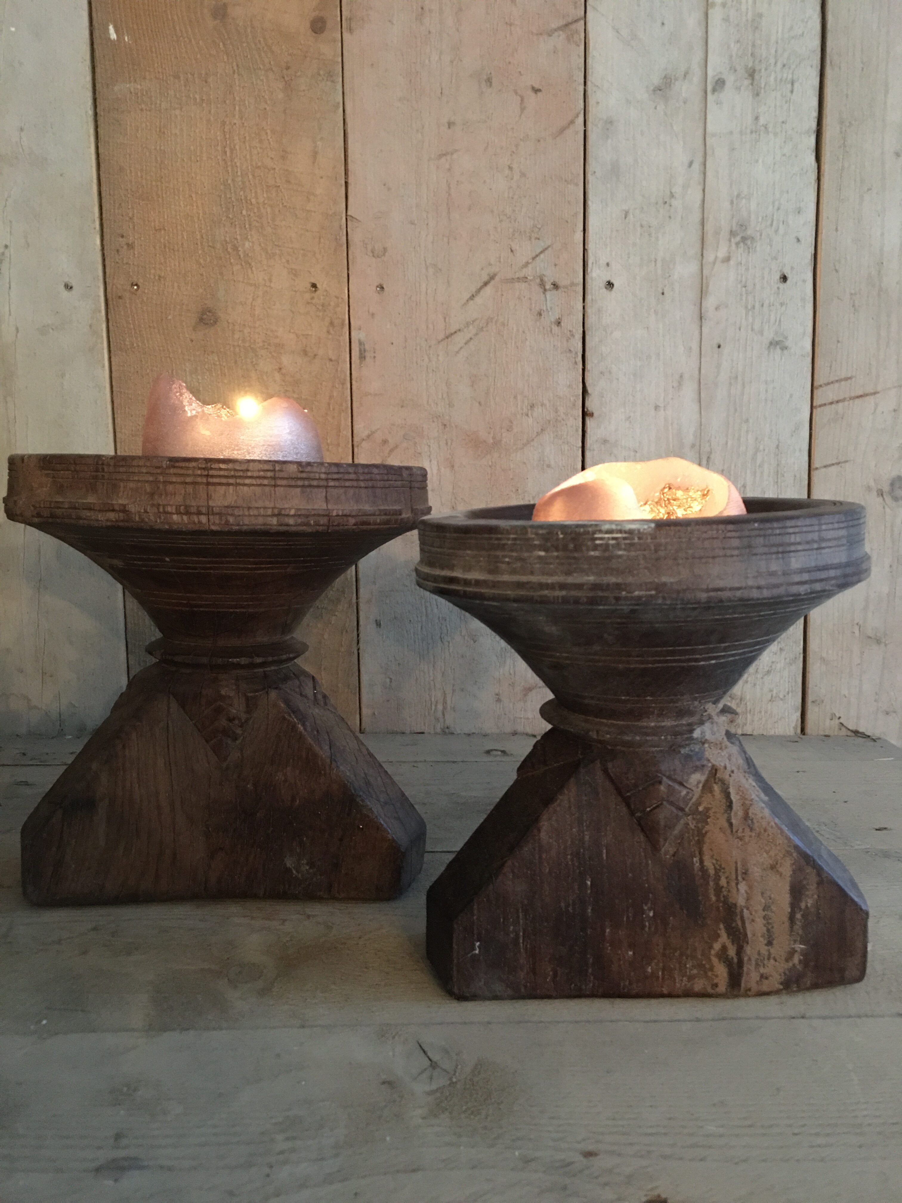 Houten decoratieve ouderwetse graanverdeler. Heel goed te gebruiken als kandelaar